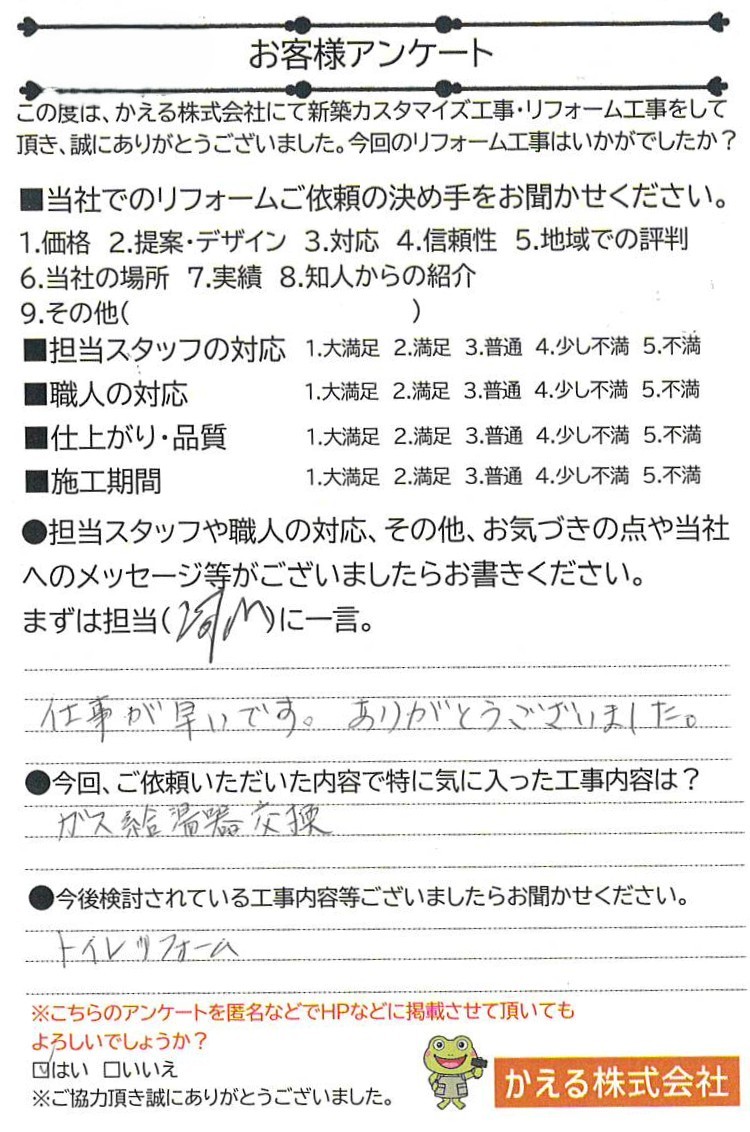春日井市 K様 給湯器交換工事