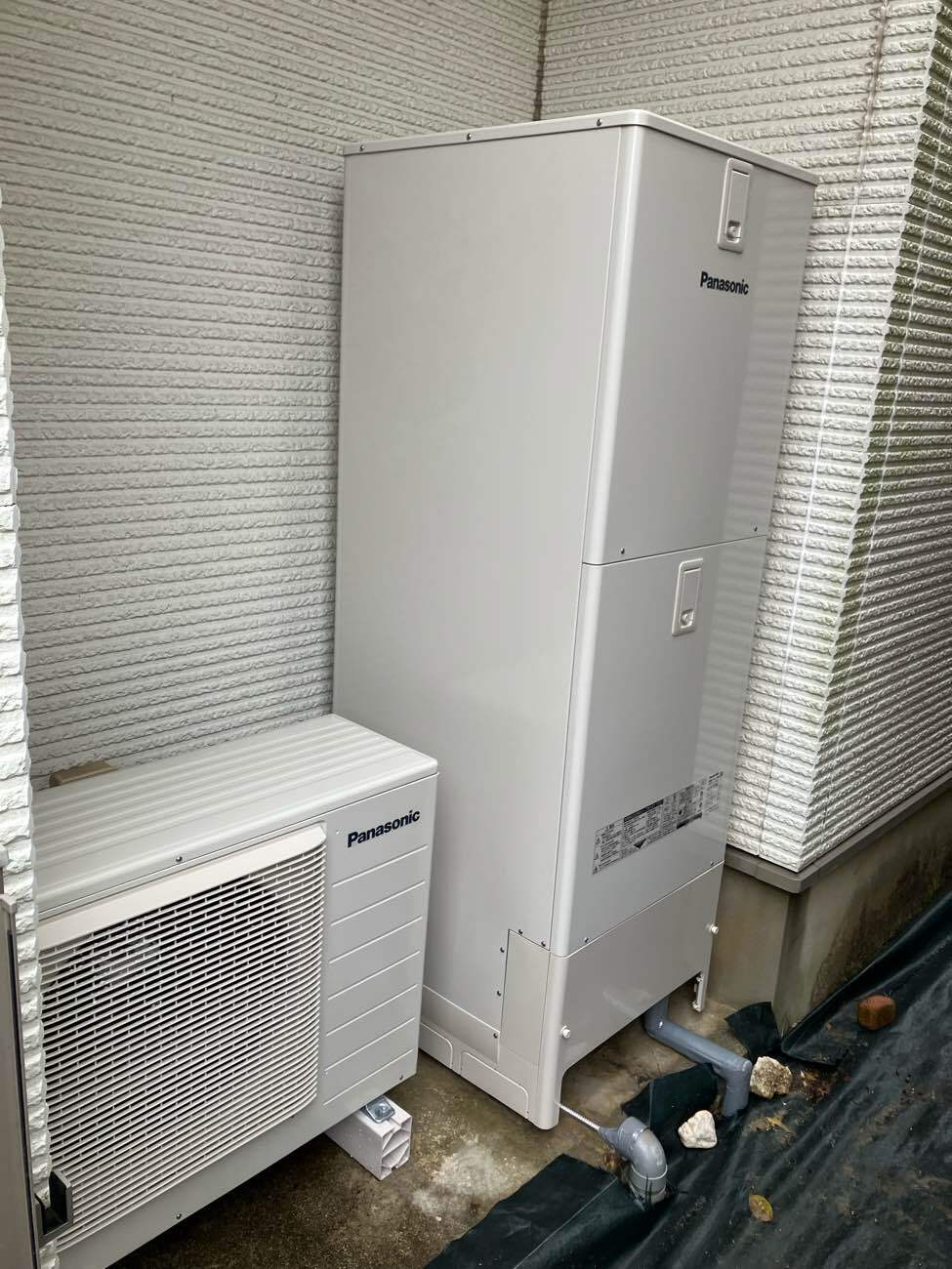 工事当日は、既設エコキュートの撤去から新しい機器の設置、配管接続、試運転まで段取り良く進行し、予定通り無事に完了。